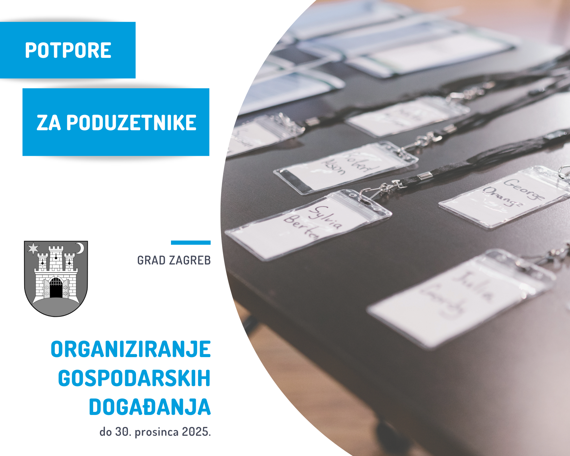 Grad Zagreb objavljuje Javni poziv za dodjelu potpore za organiziranje gospodarskih događanja na području Grada Zagreba za 2025. koja doprinose ukupnom gospodarskom razvoju, a odnose se na događanja iz područja promocije i razvoja poduzetništva i obrta u Gradu Zagrebu.