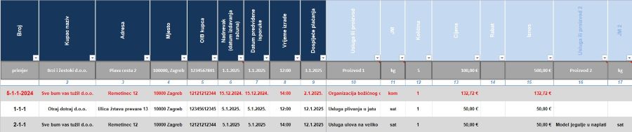 Jura je iz tablice za 2024. godinu kopirao nenaplaćene račune u novu tablicu za 2025. godinu.